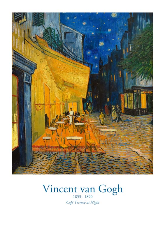 翌日。 昨夜の余韻が消えないまま、私は偶然立ち寄った本屋で一冊の画集を手に取った。 開いたページに、あの夜の光景が閉じ込められていた。 鮮やかな黄金色のテラス、深い青の夜空。ゴッホが描いた『夜のカフェテラス』。