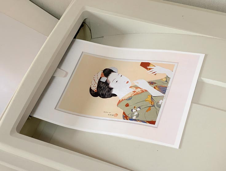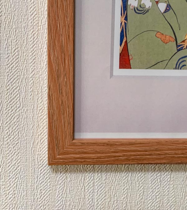 古希画廊では、マット(背景)に色がついている作品には、あらかじめ**「白マットのデザイン」**もセットでご用意しています。