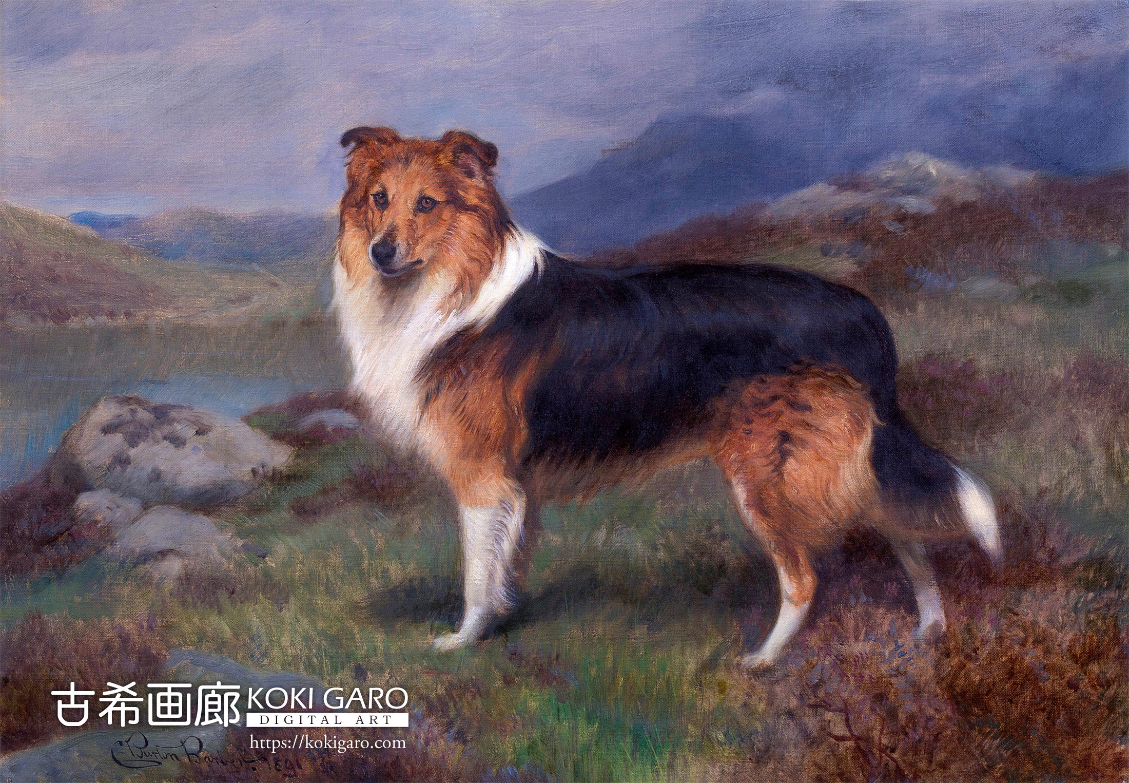 チャールズ・バートン・バーバーが描いたコリー犬『Darnley』は、ヴィクトリア女王の深い寵愛を受けた愛犬の姿を今に伝える、王室コレクション由来の極めて貴重な肖像画です。バーバーの作品の多くは「子供と動物」という愛らしい組み合わせで物語を紡ぎますが、本作においてはあえて人間を排除し、犬を単独の主役として据えています。