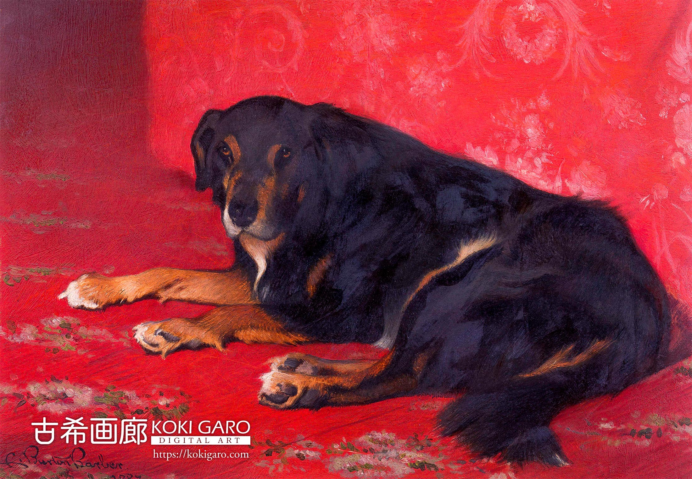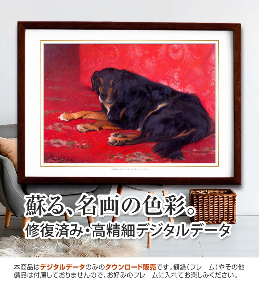 この対比は、王室という厳格な「公的」な場所が、犬たちが安心して眠れるほどの「私的」で温かな家庭空間へと昇華されていることを示しています。チャールズ・バートン・バーバーは、豪華な室内装飾を背景に据えながらも、主役であるノーブルの柔らかな毛並みと無防備な姿勢を描くことで、宮殿の中に流れる穏やかで人間味あふれる時間を、一枚の絵画の中に永遠に封じ込めたのです。