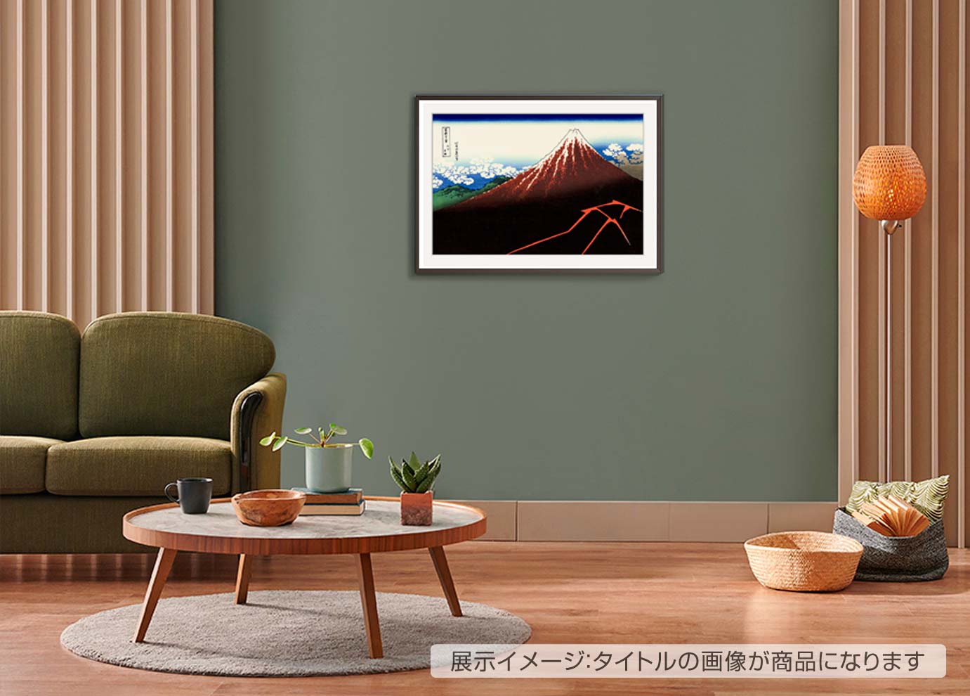 この三枚は、海・晴・嵐というまったく異なる状況の中で富士山を描いた点が共通しており、北斎の観察力と表現力の幅を一度に楽しめます。エピソードとして、これらの作品は構図や色使いの完成度が高く、早くから人気を集めたため、後世に「三役」として特別視されるようになりました。まずはこのセットから、北斎の世界に触れてみてください。